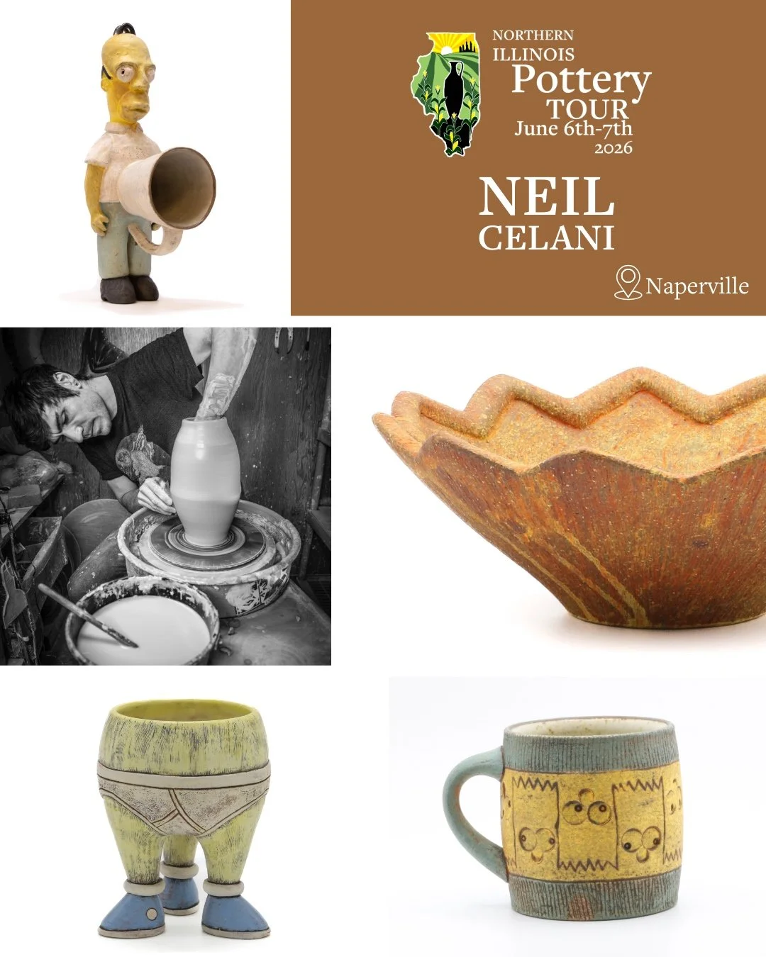 Neil’s pots are totems of his existence. With the capacity to communicate conceptual meaning and to serve as beautiful objects of utility, pottery not only dances in the notorious territory between art and craft, it embodies the human spirit. He has a profound fascination with the kaleidoscopic histories of pottery and he uses the pot as a foundation upon which to build his ideas and inspirations. Just as ancient makers deified and worshiped the natural world around them through abstraction and symbolism in objects, Neil translates his own reality using the pottery form to reflect on my experiences and influences creating an outlet to express the beauty and absurdity that is life.