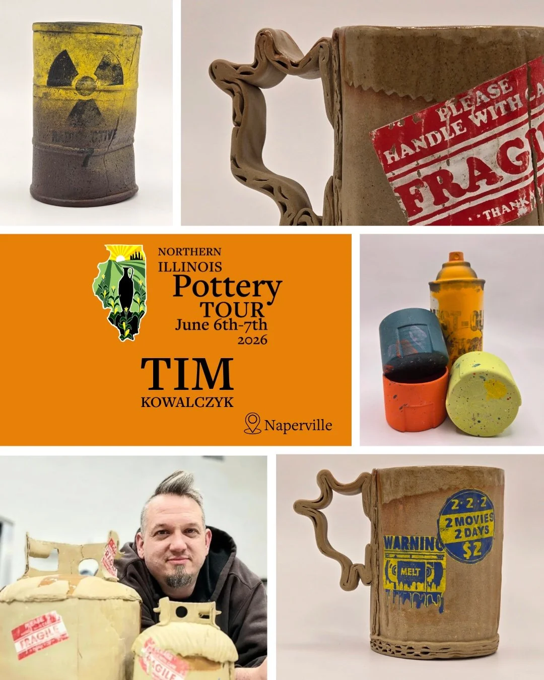 Tim AKA "Trash King of Illinois" makes stuff, out of stuff, that looks like other stuff. He lives and works out of his home in Minonk, Illinois, since graduating with his MFA from Illinois State University in 2011. Since then, Tim has been in a steady stream of juried group, invitational, and solo exhibitions.